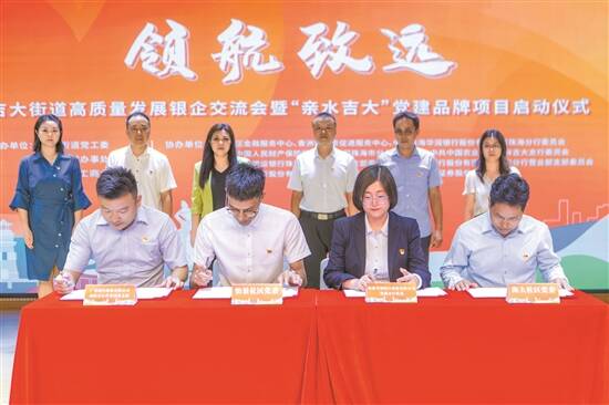 日前,领航致远——吉大街道高质量发展银企交流会暨“亲水吉大”党建品牌项目启动仪式在珠海市香洲区吉大市民艺术中心举行。珠海香洲区委组织部、吉大街道、区金融服务中心相关负责人,吉大金融行业党建成员单位代表、社区书记代表共同启动项目,辖区金融单位、企业代表约100人出席活动。