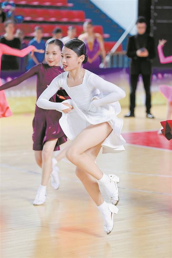 羊城晚报讯 记者王雷摄影报道:7月17日晚,樟木头体育馆内舞姿翩翩、活力满满,“潮流东莞 舞动新精彩”广东省第12届青少年国际标准舞锦标赛、中-拉标准舞/拉丁舞国际超级联赛(东莞站)暨东莞市第14届国际标准舞锦标赛颁奖晚会在这里举行,受到国内外国标舞爱好者的广泛关注,当晚直播平台有近300万人次观看,充分展现了“潮流东莞”国标舞的浓厚艺术基础。