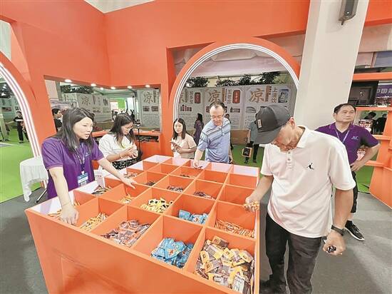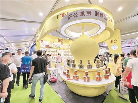 无穷、展翠、佳宝、笑咪咪、新乐、康辉、汕泰……走进食品展馆,多个耳熟能详的潮州食品龙头企业接连映入眼帘,不仅如此,还有王老吉、燕塘乳业、东鹏、天地壹号、广盐集团等广东及全国食业名企参展,涉及特色凉果、糖果、儿童零食等休闲食品,也包括功能饮料、果汁饮料等饮品,还包含乳制品、调味品、预制菜等食品品类,实现全品类覆盖。