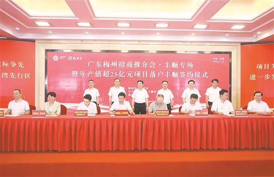 近日,广东梅州招商推介会·丰顺专场暨年产值超25亿元项目落户丰顺签约仪式在深圳举行。此次招商会是梅州市、丰顺县坚持实体经济为本、制造业当家,树牢“发展思维”“产出思维”,落实招商引资“一把手”工程的有效实践,是把资源要素优先用到“打粮食”项目上,奋力推动苏区高质量振兴发展的有力举措。