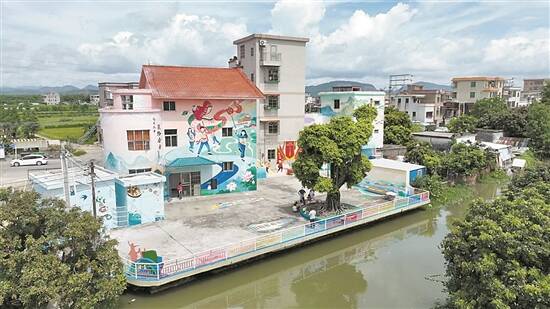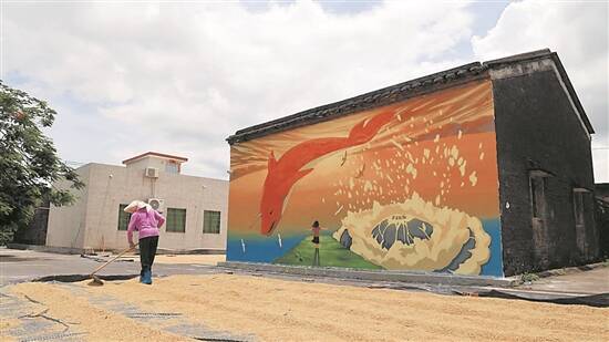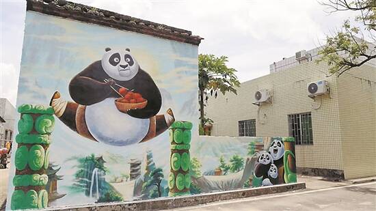 莲洲镇东湾村则掀起一股“国潮范”:大鱼海棠、大圣归来、功夫熊猫……国漫中的动画形象,在农家村屋墙上都能找到。
