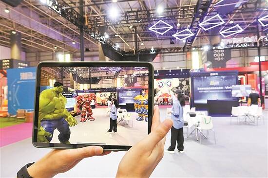 在现场,陈云雷还带记者解锁了展区新玩法。只见他手拿平板电脑,戴上AR、VR眼镜,随后记者在平板电脑中就可以看到,原本科技感十足的展区立刻变成3D版侏罗纪公园。“和传统VR不同,我们是在原有的现实空间里叠加虚拟空间进行展示,把内容搬到数字端,丰富观众的体验。”陈云雷说。