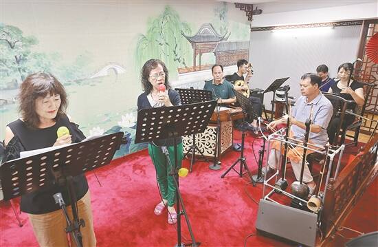 在东莞不仅有专业的粤剧表演艺人活跃在粤剧表演舞台,在民间也有一众粤剧发烧友痴迷粤剧。“我们这里应该是莞城条件最好的一个私伙局,大家经常聚在一起相互交流。”莞城一家私伙局的成员方先生告诉记者,他们的私伙局成员都是一些粤剧发烧友,大家自发组织起来成立了这个私伙局,就是为了有一个大家可以相互切磋和交流的场所。