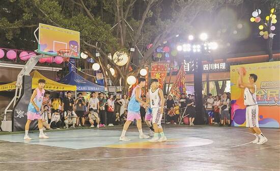 球场上灯火通明,围观者层层叠叠,欢呼声不绝于耳。7月14日晚,佛山禅城区全民篮球季在佛山夜间人气最旺的创意产业园揭幕,远道而来的黔东南锦屏队与佛山代表队率先奉献一场酣战。