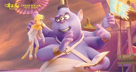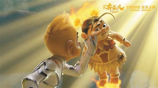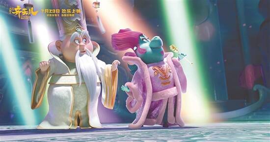 传统故事的现代表达,是影片的一大特色。“目的地已到达,本次导航结束!”当“筋斗云”载着主人公齐天儿上天入地时,突然出现的现代台词令观众不禁捧腹。影片对角色的塑造也颇为大胆。“三界至尊”玉皇大帝是个“麦霸”,威仪十足的龙王最爱粉色,哪吒是个脾气暴躁的萌胖墩……融入现代流行元素的形象设计,让大小观众都看得很开怀。
