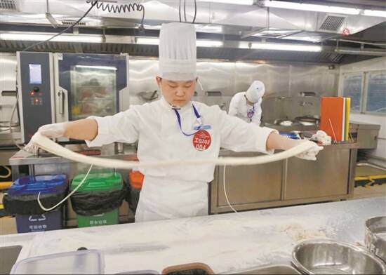 “获得一等奖确实是意外惊喜。”顺德职业技术学院烹饪工艺与营养专业二年级学生范镔镔说,最大收获是锻炼了自己的抗压能力。“现场操作分就是操作规范的模块,我们是基本上没怎么扣分,但是在菜品分上,我们跟其他地方的选手还是有一定的差距。其次在菜品的完成度上,我们还可以再做得更精致一些。因为时间关系部分菜品做得比较粗糙,如果再做得更精细一点的话,就能呈现出更好的宴席。”