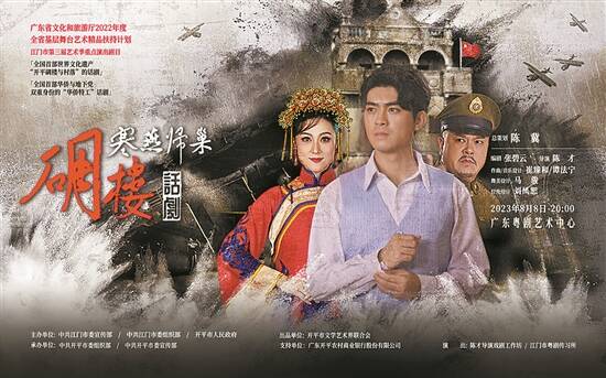 羊城晚报讯 记者彭纪宁、陈卓栋,通讯员谭耀广、李奇报道:由中共江门市委宣传部、中共江门市委组织部、开平市人民政府主办,中共开平市委组织部、中共开平市委宣传部承办,开平市文联出品的大型红色原创话剧《碉楼·寒燕归巢》定于8月8日晚8点在广东粤剧艺术中心首演。