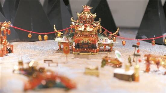 走进展厅,质感精细、熠熠生辉的金属拼图细节活灵活现、抓人眼球。拼酷相关负责人表示,自创办自主品牌“拼酷”以来,公司潜心挖掘国风国潮主题,“十里红妆”“醒狮”“千角灯”等产品深受市场喜爱,不仅融合了传统文化内涵,更因金属质感与国风元素的完美融合,尽显栩栩如生的艺术特色。展厅不仅展出了各色各样的拼酷潮玩产品,更是以公司创始人叶祖峰在东莞白手起家的创业经历为线索,展示其在东莞的奋斗历程。从普通的玩具厂流水线上的一员,到创办企业打造自主品牌,产品结合中国传统文化元素,在金属拼装玩具领域闯出一番天地,叶祖峰在东莞逐梦成功的故事,将为实习生们带来新的启发。