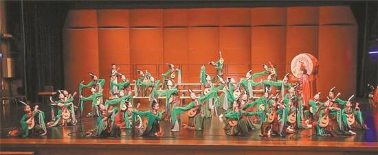 表演中,学生深情的朗诵、激越的鼓声、柔美的舞蹈深刻展现了戍边将士强烈的思乡情绪和渴望和平的悲苦心绪;弹挑演奏,学生技巧熟练,琴声悠扬悦耳,领唱与和声相依相辅,多彩的艺术表现形式将这首汉族诗歌呈现在观众面前,把观众带进了诗歌的意境当中。