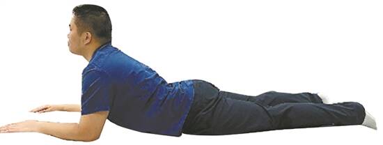 第2招:抬头昂胸 取俯卧位,双手支撑于床面,先将头抬起尽量后伸,同时双手支撑起半身,使胸昂起,挺胸的力一直要达到腰部。每组做15-20个,每日2-3组。