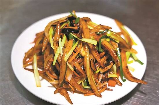 除了甜点,茶楼的咸点心也颇为人称道。现点现炒的银针粉,是由阿姨清晨5时手工搓成。经过大厨“抛锅”,五颜六色的食材在空中飞舞,转眼变成一盘美味,吃起来镬气十足。区敬奕小时候,就会和妈妈一起搓粉,开店后,他专门在店里“开课”,教会店员,复原了这道“妈妈的味道”。