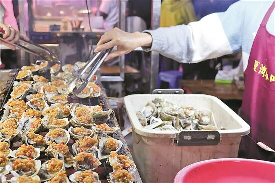 夏湾夜市上的烤生蚝 羊城晚报记者 李旭 摄