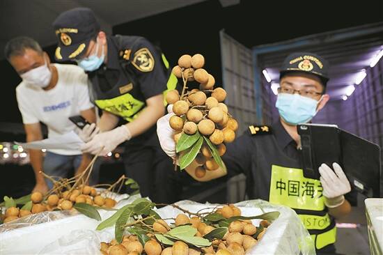 港珠澳大桥海关关员正在对供港高州龙眼进行查验