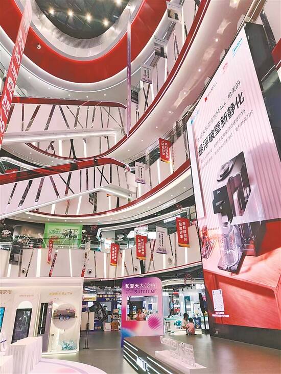 东莞京东MALL选址于目前最核心、最繁华的鸿福路商圈,和汇一城、国贸等购物中心相邻两条马路,走地铁地下通道可直达京东MALL。笔者走访发现,京东MALL的消费者覆盖了少年到壮年多个年龄层。内部设电竞、电玩、二次元文化,以及汽车、家居、家电、手机商品的顶级体验展厅,市民可以在京东MALL体验沉浸式娱乐、潮玩数码、智慧家等玩法。这样的布局,带给京东MALL的发展与增长是明显的。2023年5月25日,东莞首店京东MALL已经开门试营业。截至2023年6月15日,东莞京东MALL累计成交额已经突破8000万元,工作日客流都在5000人次,周末单日客流均过万。
