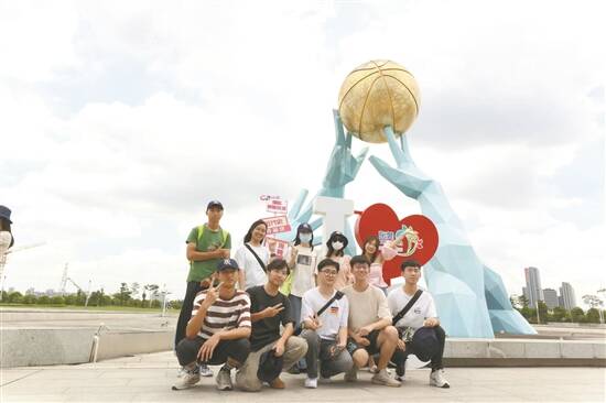 实习生在东莞篮球中心打卡留念
