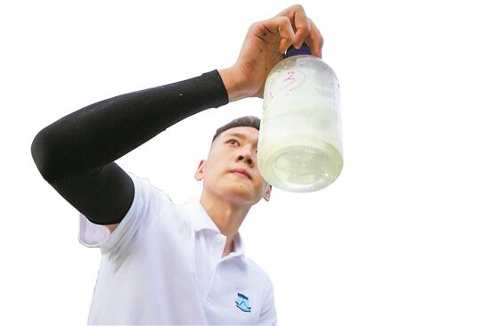 余杰收集试验田的水体采样