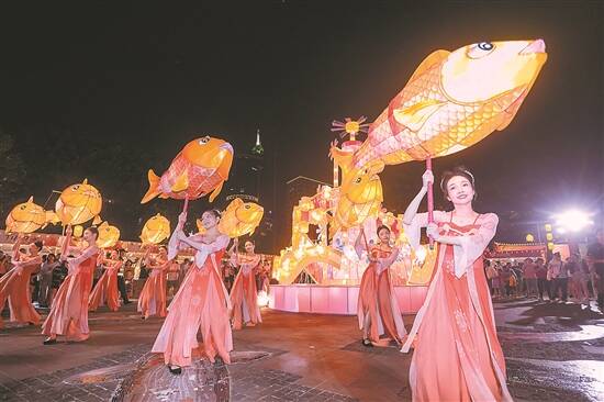 长龙起舞、鱼灯游走,人们身着古装、手持咖啡奶茶,漫步在岭南天地的古街巷里……作为“粤夜粤美”系列活动,佛山古镇民俗夜游体验周同步启动。夜游路线串联起了祖庙博物馆和岭南天地,通过情景搭建,让龙狮闹元宵、文昌诞、粤剧华光诞、佛山祖庙庙会、塔坡庙会、佛山秋色、佛山古镇灯会、游朱紫、行花街、行通济等禅城十大精彩民俗活动合体“穿越”再现,为市民游客营造出奇妙的文旅之夜。畅游其中,既能感受到千年沉淀、览尽岭南风华,又能领略别样的“新国潮”风范、品味佛山古镇文商旅融合魅力。
