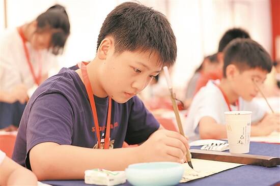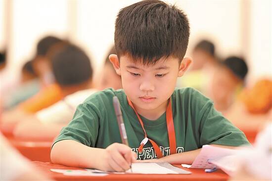 “我很喜欢王羲之,最喜欢他的交友态度。”学习书法两年的王一心说,她这次是过来陪弟弟王一鸣参赛的。在家里,她和弟弟都学习书法,她通过书法了解到一些古人的故事,时常会向往他们的一些性格品质。而弟弟则是在书法中发现了兴趣,找到了爱好。“有时候放学接他们回家,姐弟俩都会聊聊书法,谈论自己喜欢的字。”王一心和王一鸣的妈妈表示。