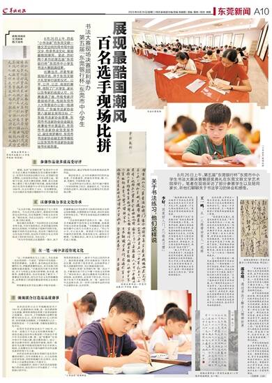 8月26日上午,第五届“东莞银行杯”东莞市中小学生书法大赛决赛暨颁奖典礼在东莞文联文学艺术院举行。笔者在现场采访了部分参赛学生以及陪同家长,听他们聊聊关于书法学习的体会和感悟。