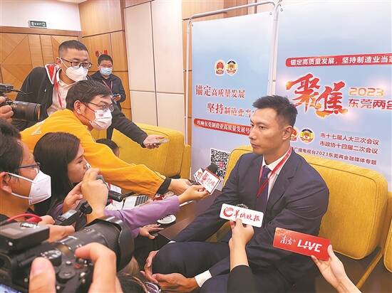 今年东莞两会期间,东莞市政协委员易建联接受羊城晚报记者采访(资料图片) 羊城晚报记者 王雷 摄
