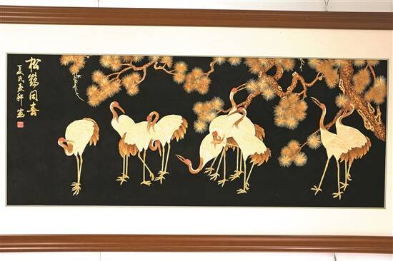 麦秸秆是麦秆画最重要的原料,它的挑选十分讲究。“我们需要选出颜色比较均匀、没有斑点的优质麦秆,原料选好之后通过硫黄熏蒸消毒,使颜色更加均匀,再经过中药的浸泡,起到防虫蛀的功效。”聂亚平向记者介绍道,麦秆画作为一项纯手工工艺,挑选麦秆只是制作麦秆画的第一道工序,想要制作一幅完整的麦秸画作品,还需要经历“熏、蒸、漂、刮、推、烫、剪、刻、编、绘”等多道工序。