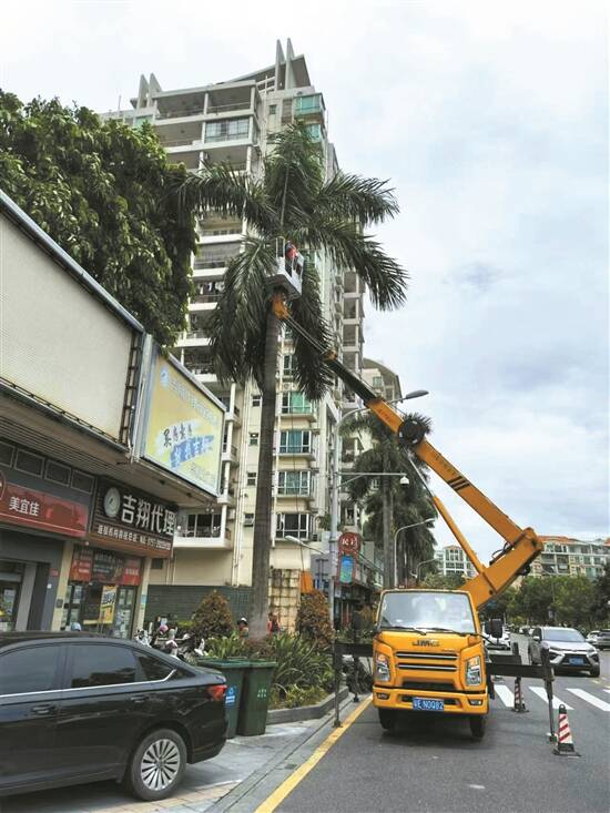 抢在台风前,修剪加固城市行道树