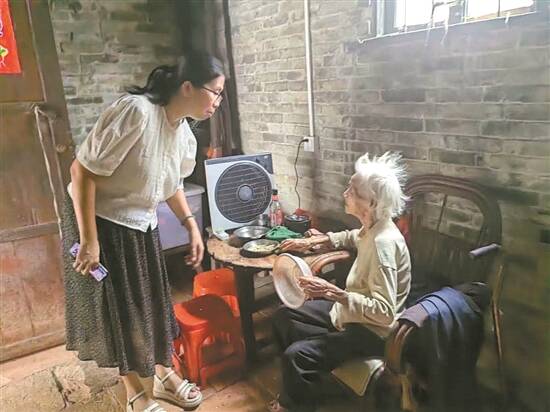 南海丹灶一社区工作人员询问老人情况