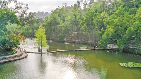 此外,公园着手优化完善基础设施,修建排水渠解决积水污染,半山亭加装防护栏增强安全性,增设水泵提升南潮山消防综合能力,持续为游客创造更舒适的游园环境。梁伟正称,公园将持续开展“微改造·精提升”,完善基础配套,改造主题更多的特色景点,为市民打造风景秀丽、活动多样的森林生态游憩胜地。