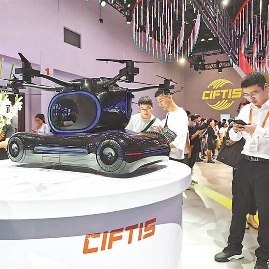 在服贸会综合展的展示厅入口处,广汽飞行汽车模型十分显眼