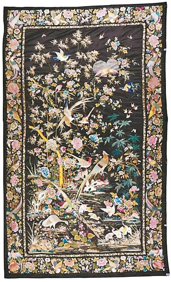 广东省博物馆瑰经典藏品“清石青缎地‘宝生昌’号广绣花鸟大挂帐”