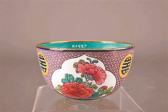 广东省博物馆珍品“清铜胎画珐琅绘花卉纹碗”
