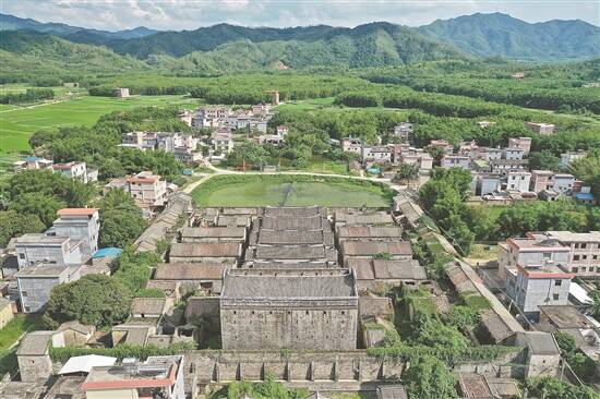 而今,在功武村,绵延不断的古建筑,依然无声地述说着这里曾经的繁华。在这些古建筑群落中,最为雄伟壮观的是五宅围,也被称为“华南第一堡”。