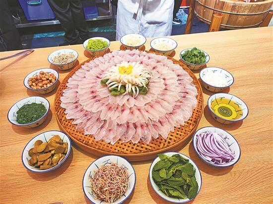 其实在古代,鱼脍也注重调料。北魏贾思勰所著《齐民要术》便记载着一道特色名菜“金齑玉脍”。其中,“脍”是指切成薄片的鱼肉,“齑”指切碎了的腌菜或酱菜;“金齑”是指共用的七种配料:蒜、姜、盐、白梅、桔皮、熟栗子肉和粳米饭。