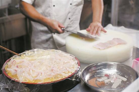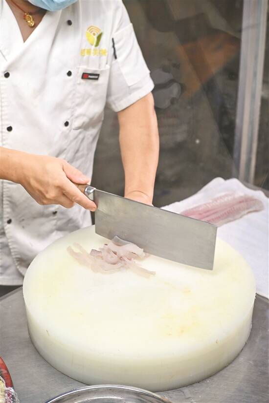 五华鱼生考验刀工,需切片均匀 巫鸿高 摄
