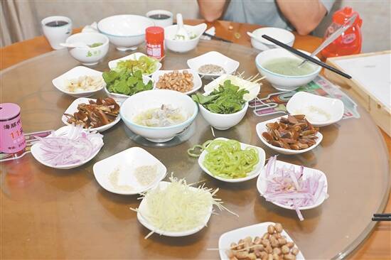 “除了选鱼讲究外,鱼生配料(佐料)亦丰富多样,少则五六样,多则十几样,各色配料能在桌面围成一个圈。”五华就业服务中心客家菜培训推广组组长廖村振介绍道,有些人对吃配料的热衷程度,甚至超过鱼生。