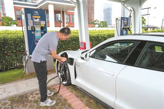 一名澳门用户在使用欧标充电桩充电,该站点是南方电网公司在合作区投资建设的充电站之一 受访者供图