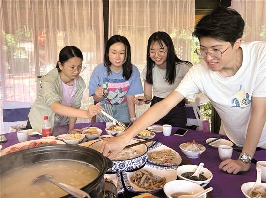 游客们品尝高明濑粉