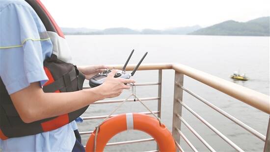 在深圳水库主坝坝头,粤海水务工作人员钟伯荣在岸边操作着一架无人船快速驶来。对方告诉记者,在这项技术投入使用后,只需要提前设定好采样计划,无人船就能按计划到点采集并携带样品返回码头,工作人员只需在码头等待取样。这些“智慧水务”的创新,用新的方式守护着东深供水生命线,谱写出湾区水利惠民生的新篇章。
