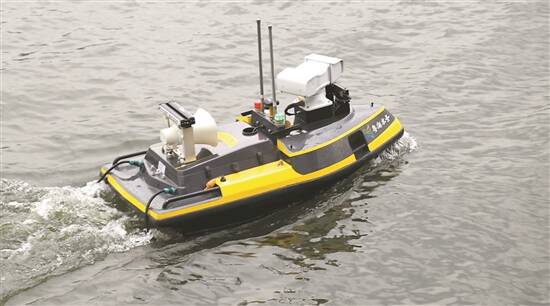 广东粤港供水有限公司深圳供水管理部工作人员在岸边操作着一架无人船采取水样