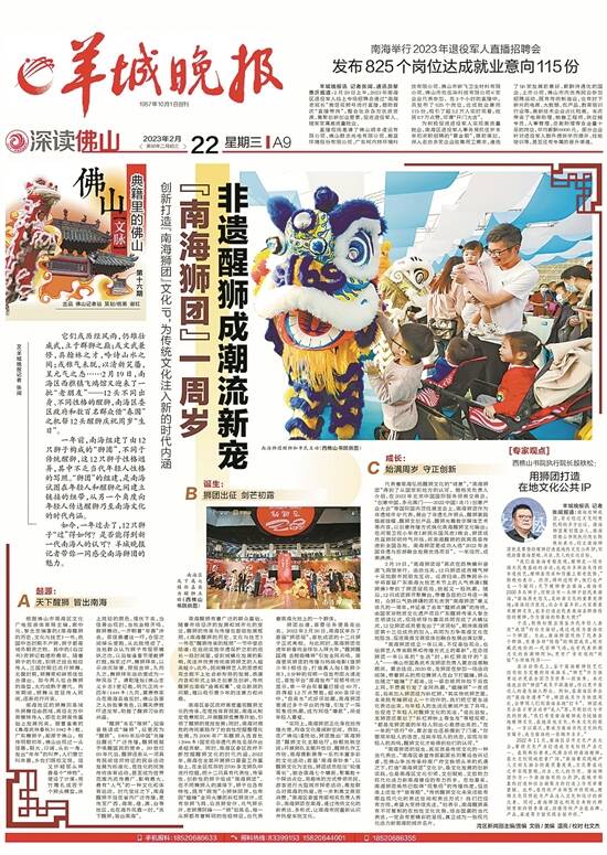 《典籍里的佛山》并不是我们推出的首本文化作品——早在2022年,羊城晚报社就与佛山市文化广电旅游体育局合作,出版了文化作品《佛山文脉》。该书还入选了“2023年第五届广佛同城共读”候选书单。本次出版的《典籍里的佛山》作为《佛山文脉》的升级版,将进一步提升读者的阅读体验。为此,我们为书中每一篇文章都配上了最通俗易懂的漫画解读,用120幅国风漫画展现佛山的书卷气与烟火气。