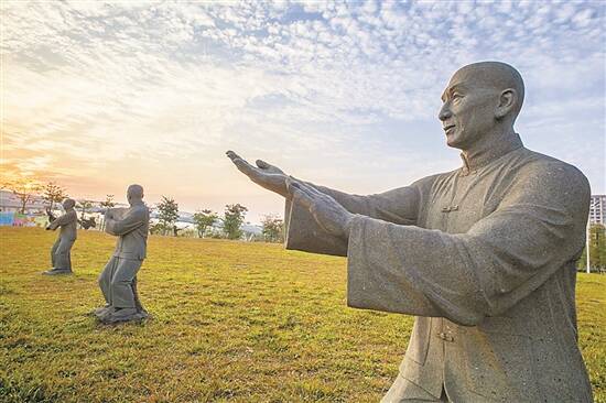 罗村咏春体育公园内的叶问石雕 吴泳 摄