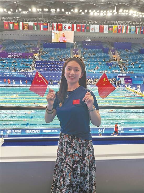 杭州亚运会,是高雨宁第一次到大型赛事现场,其实从杭州官宣开始,就一直在期待着杭州亚运的到来。她说在高考的时候就到过杭州,所以很期待与这座城市有全新的相遇, “也算是对于我成长的一种见证。”另外,她也很向往这种大规模的体育盛会,很想到现场去感受一下赛事,这次是圆梦了。