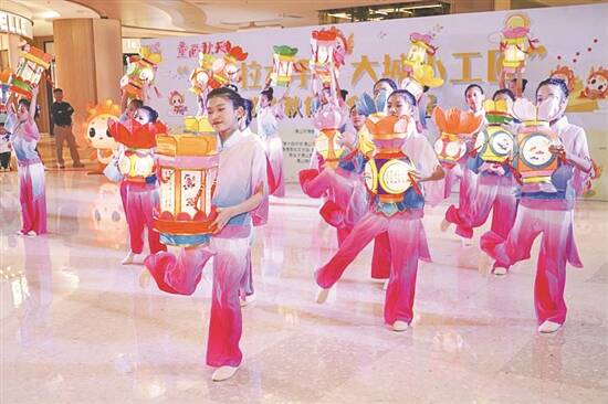 除了静态的非遗工艺品展示,本次成果展的另一亮点是4个节目的汇报演出,分别是彩灯舞《灯花·夜》《群狮起舞》《醒狮街舞》《秋色颂华年》,孩子们的精彩演出赢得现场阵阵掌声。