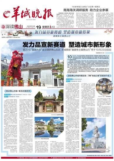 10月23日,“发力品宣新赛道 塑造城市新形象”羊城晚报“融媒体主编佛山行”活动将正式拉开序幕,国内重点主流媒体超20位“融媒大咖”将在佛山开展为期4天的调研走访活动,为佛山提出高质量品宣建言献策,打开佛山高质量发展全方位传播的新格局。
