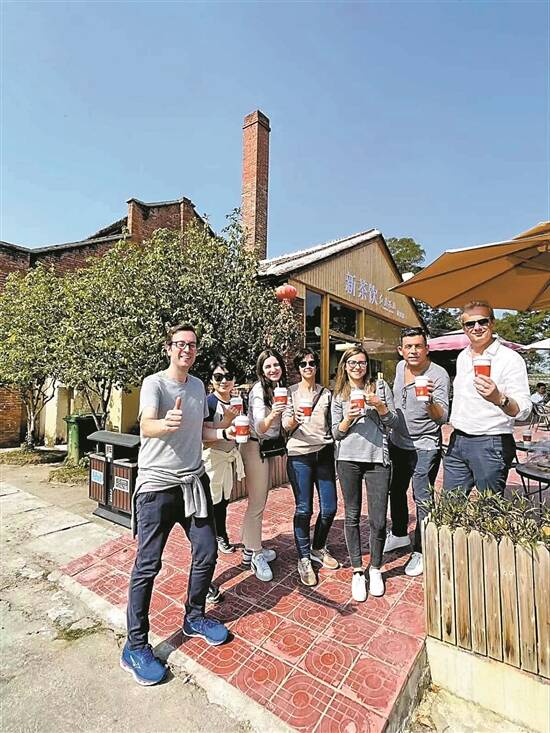 游客体验红旗茶厂新茶饮 黎存根 摄