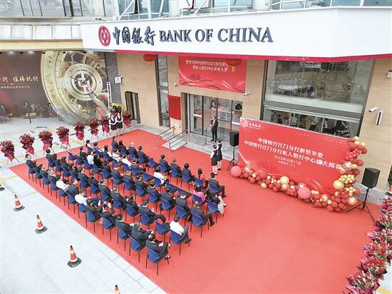 10月17日,历经数月的装修升级,中国银行江门分行(以下简称“江门中行”)以焕然一新的面貌喜迎开业,在客户嘉宾的见证下举行揭牌仪式。这家百年金融老店换上新装,为侨乡的金秋增添一道靓丽的风景,将以更加优质高效的服务普惠广大市民。