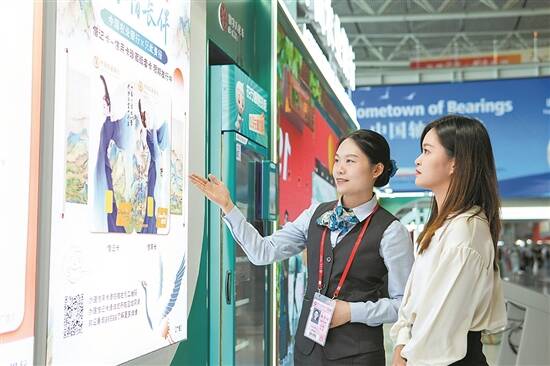 在农行展区,农行工作人员向客户介绍跨境金融产品和服务