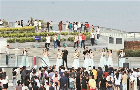 随着珠海艺术节全方位、多角度地融入城市生活,在为期一个月的时间里,珠海全天有戏、整月有戏、处处有戏。除了以惠民票价享受优质剧目,市民游客还能免费享受艺术。艺术节期间,文化惠民演出送至海韵城广场、香山湖公园、城市阳台、山房路等多个场所。