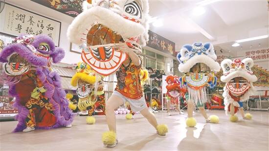 现在南兴合兴堂女子醒狮队已有20多名成员,平均年龄13岁,最小5岁。目前女子醒狮队正在备战2023年广州市青少年醒狮表演大赛。教练张哲亮表示:“期待队员展现醒狮人的精神面貌,在台上给到大家耳目一新的感觉,就达到我们的目的了。”