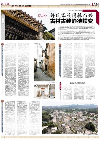历经400多年的兴衰浮沉,岚派许氏家族昔日的繁盛早已消失于历史的长河中。如今,只有一座座沧桑的古宅老屋,作为其经营糖业盛极一时的历史见证。当前,当地正积极推进岚派古村落文化保护与开发有关项目,计划打造内涵丰富的特色旅游景区,实现岚派传统村落有效保护和可持续发展,推动古村落文旅产业发展。